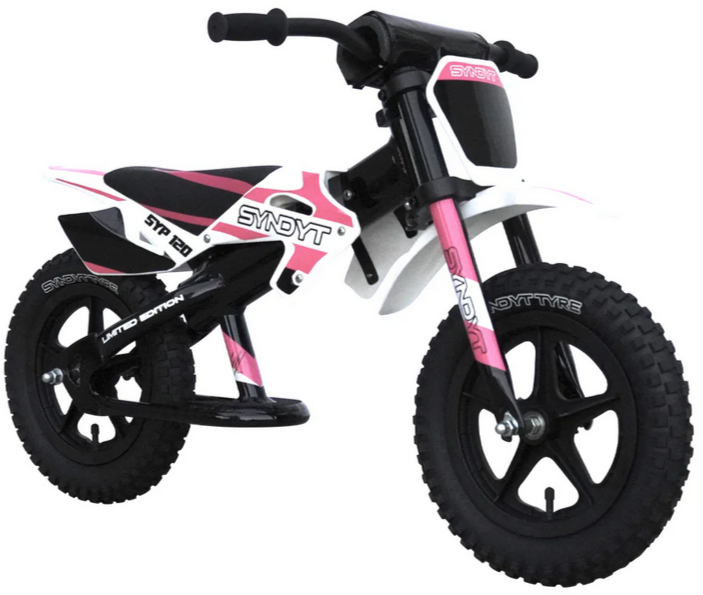 The SYP 120 is a fun and innovative balance bike designed for younger riders, perfect for ages 2-5. Combining motocross-inspired plastic styling with triple-clamp forks, this bike offers a thrilling and stylish experience for kids learning to balance and build confidence on two wheels. Available in two vibrant colors, red and pink, the SYP 120 features high-quality components and a durable design, ensuring lasting enjoyment as young riders develop their skills.